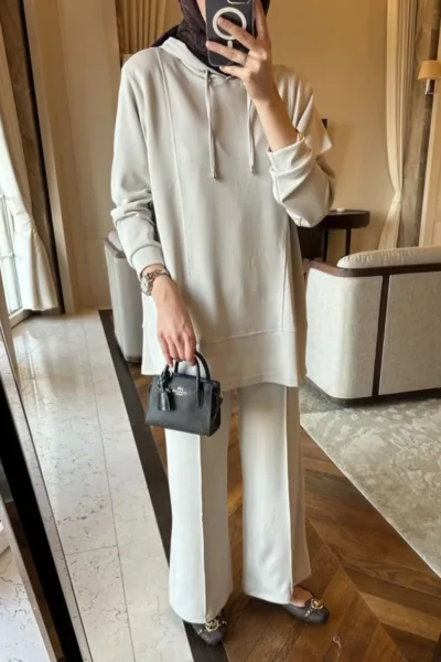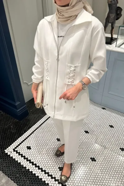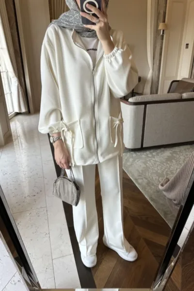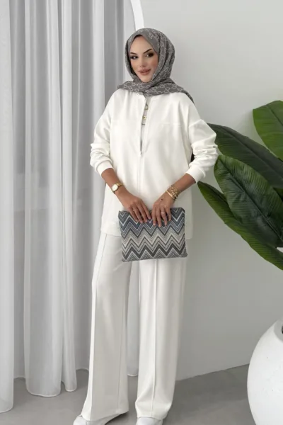Oysho Fermuarlı Basic İkili Takım BÜYÜK BEDEN TK2962 – Beyaz İnci