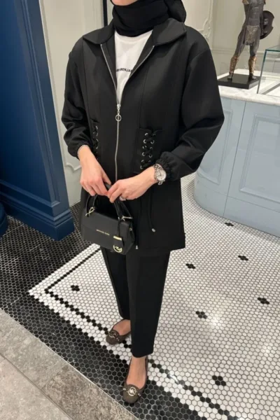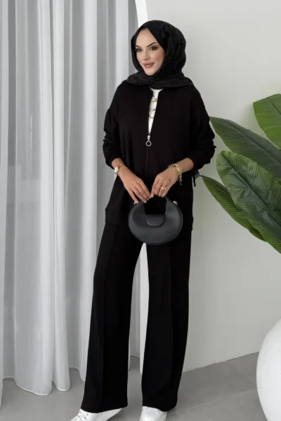 Oysho Fermuarlı Basic İkili Takım BÜYÜK BEDEN TK2962 -Siyah