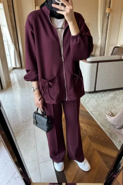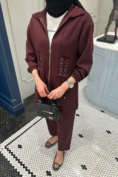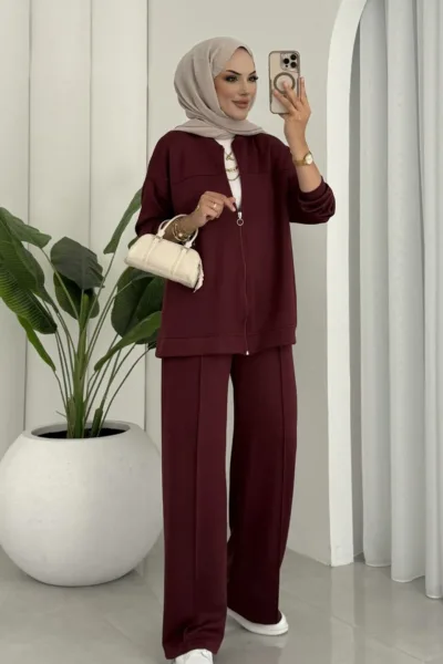 Oysho Fermuarlı Basic İkili Takım BÜYÜK BEDEN TK2962 – Bordo