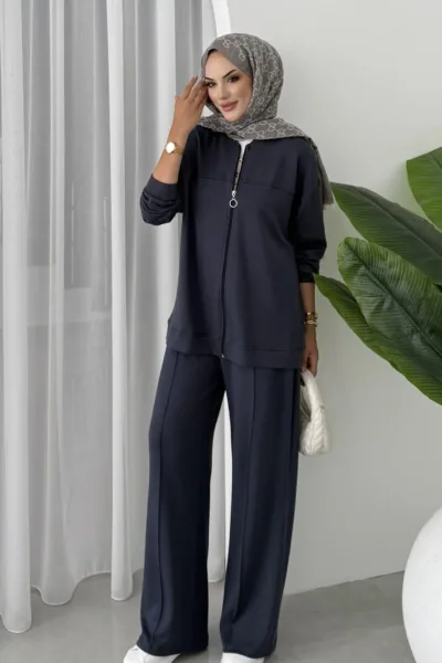 Oysho Fermuarlı Basic İkili Takım BÜYÜK BEDEN TK2962 – Füme