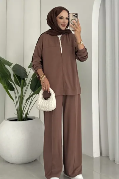 Oysho Fermuarlı Basic İkili Takım BÜYÜK BEDEN TK2962 – Karamel