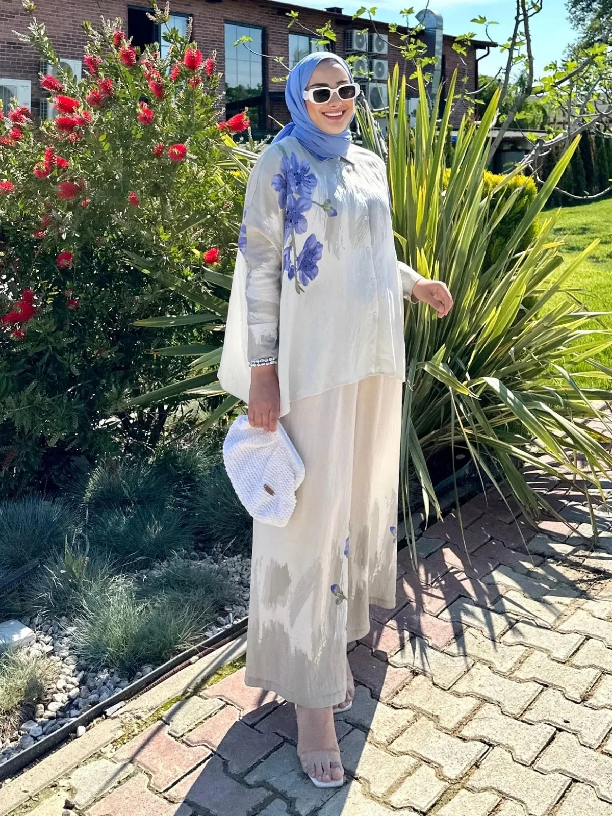 Takımımız, nefes alan ve cilde nazik bir keten karışımından üretilmiştir (%85 pamuk, %15 keten). Ketenin doğal dokusu ile pamuğun yumuşaklığını birleştirirken, polyesterin sağladığı dayanıklılık sayesinde uzun ömürlü kullanım sunar. Üzerindeki desenler, canlılığını koruyan yüksek çözünürlüklü dijital baskı tekniğiyle uygulanmıştır.
