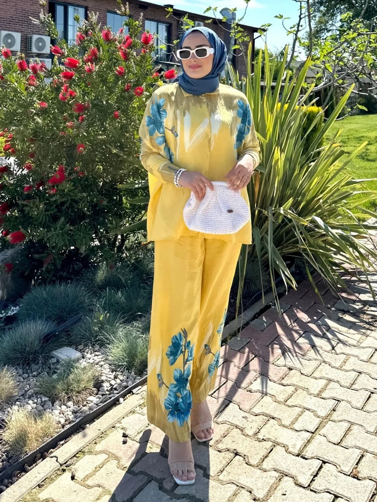 Takımımız, nefes alan ve cilde nazik bir keten karışımından üretilmiştir (%85 pamuk, %15 keten). Ketenin doğal dokusu ile pamuğun yumuşaklığını birleştirirken, polyesterin sağladığı dayanıklılık sayesinde uzun ömürlü kullanım sunar. Üzerindeki desenler, canlılığını koruyan yüksek çözünürlüklü dijital baskı tekniğiyle uygulanmıştır.