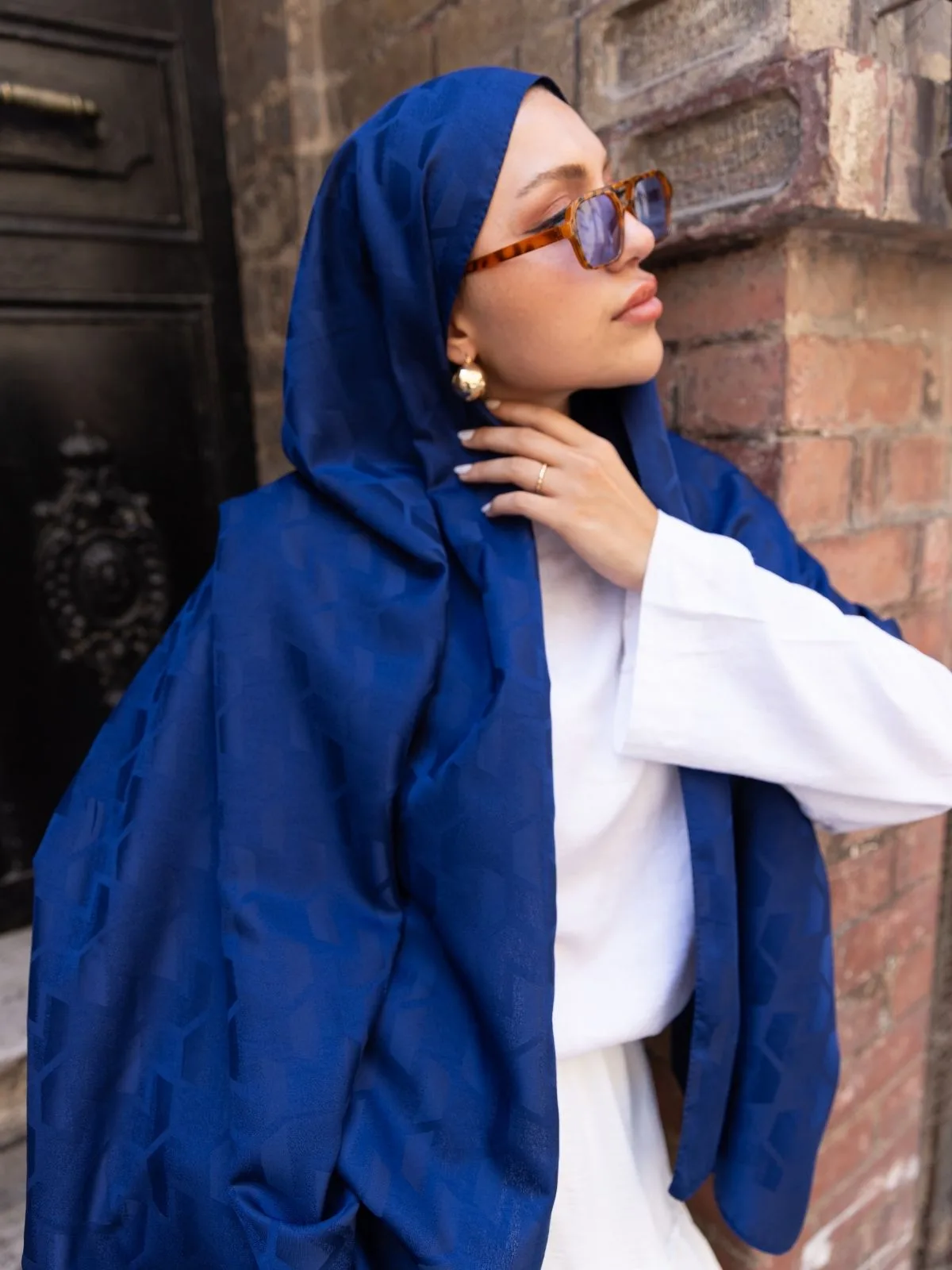 Kazayağı Desen Pamuk İpeksi Jakar Şal-53354-Lacivert Orijinal fiyat: ₺850,00.Şu andaki fiyat: ₺149,00.