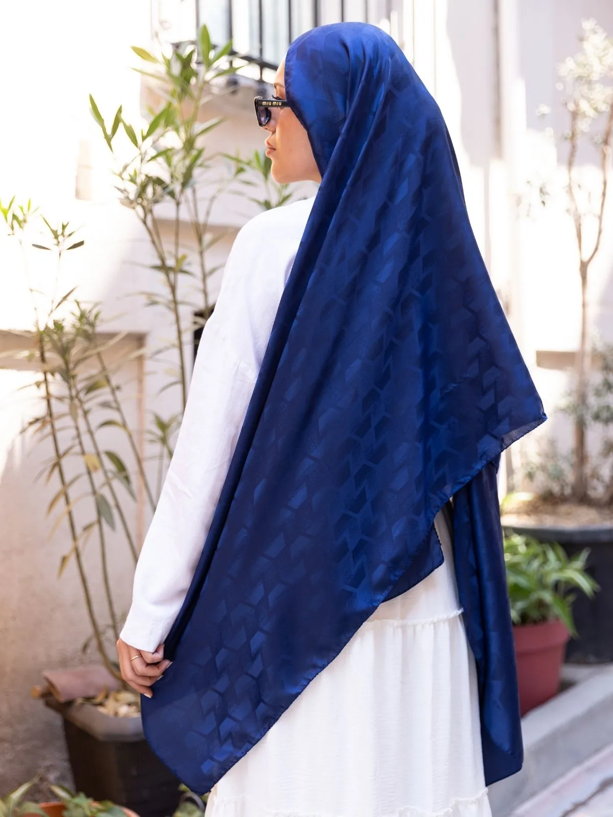 Dior Desen Pamuk İpeksi Jakar Şal-53354-Lacivert