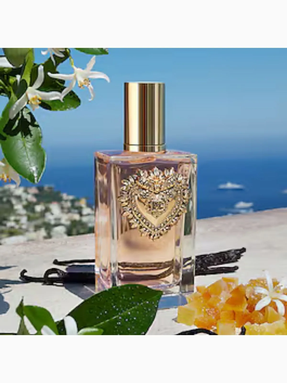Kutsal Kalp, karakteristik süslemeleriyle Devotion Eau de Parfum’un şişesini süslüyor. Tüm biçimleri ve nüanslarıyla sevginin evrensel sembolü.