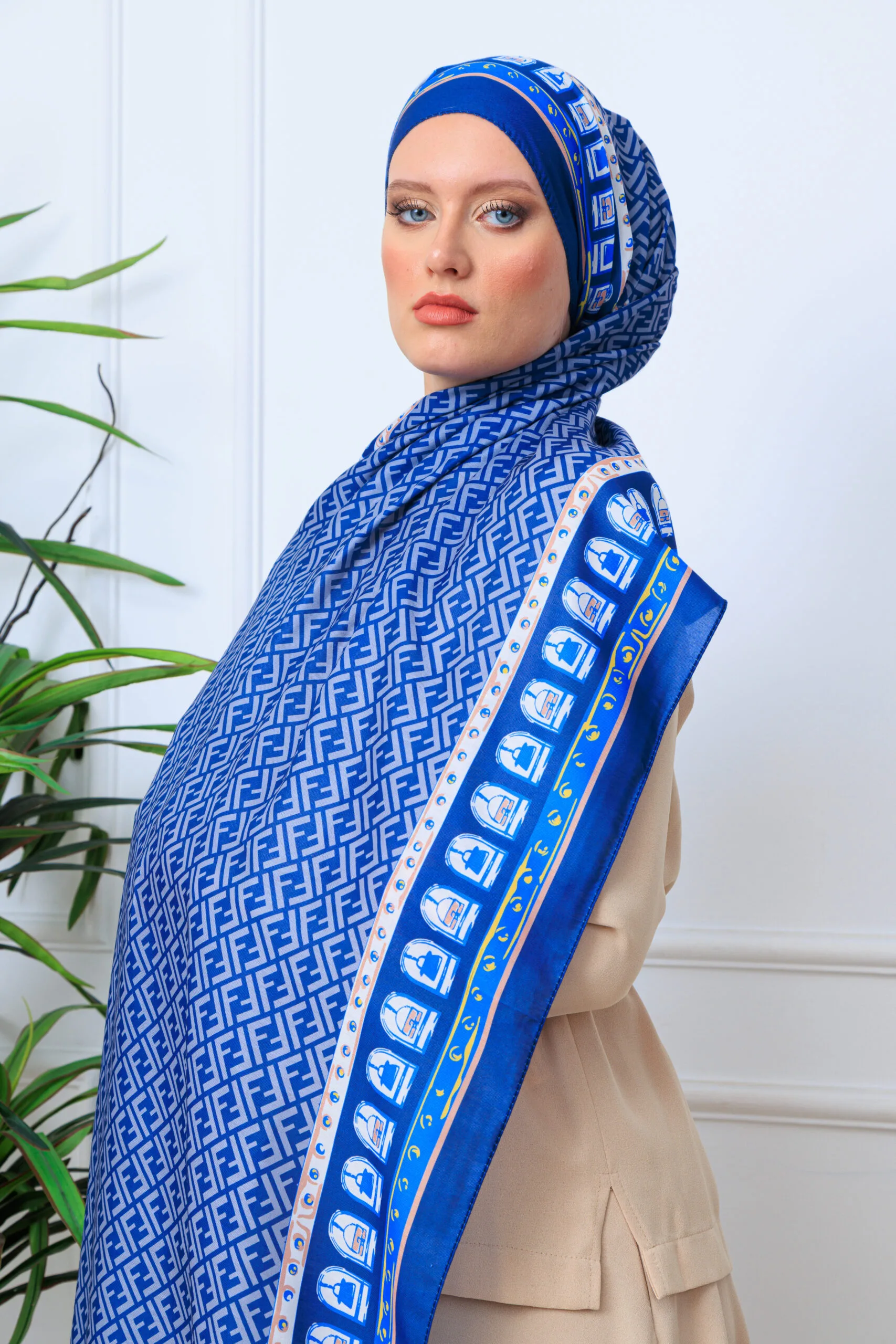 Fendi Monogram Pamuk Soft Şal 64302 – Lacivert
