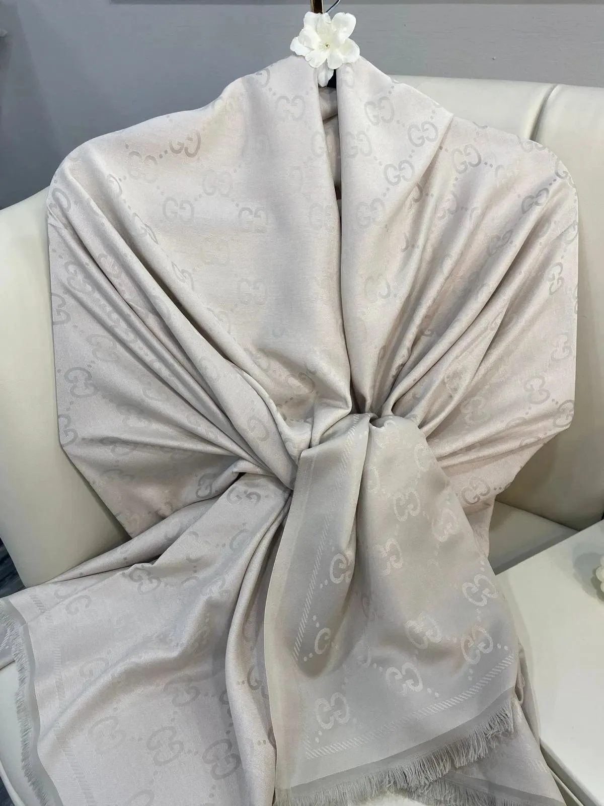 G Desenli İpek Kaşmir Çift Taraflı Şal – Bej – Taş