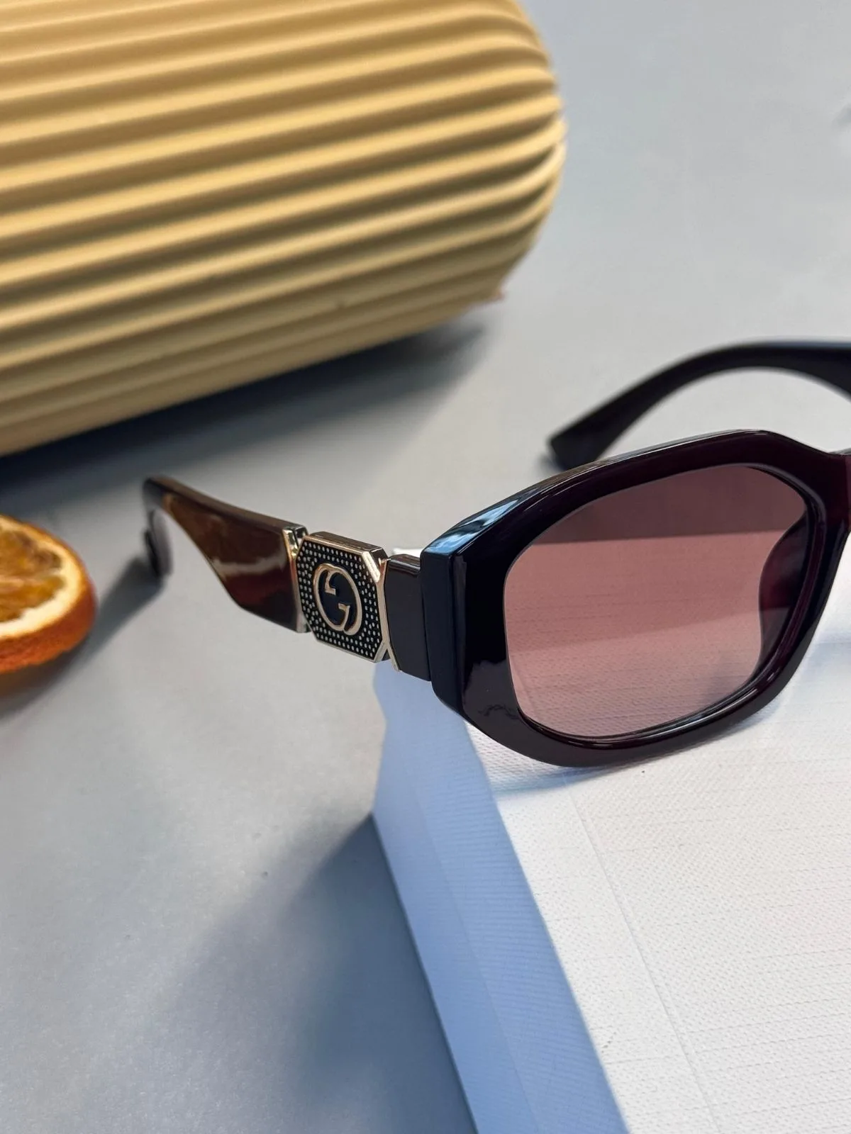 Gucci 5806 Hexagonal Güneş Gözlüğü- Vişne degrade