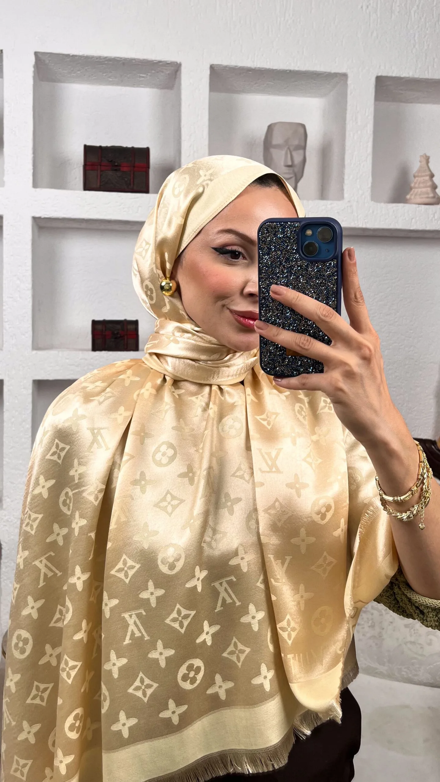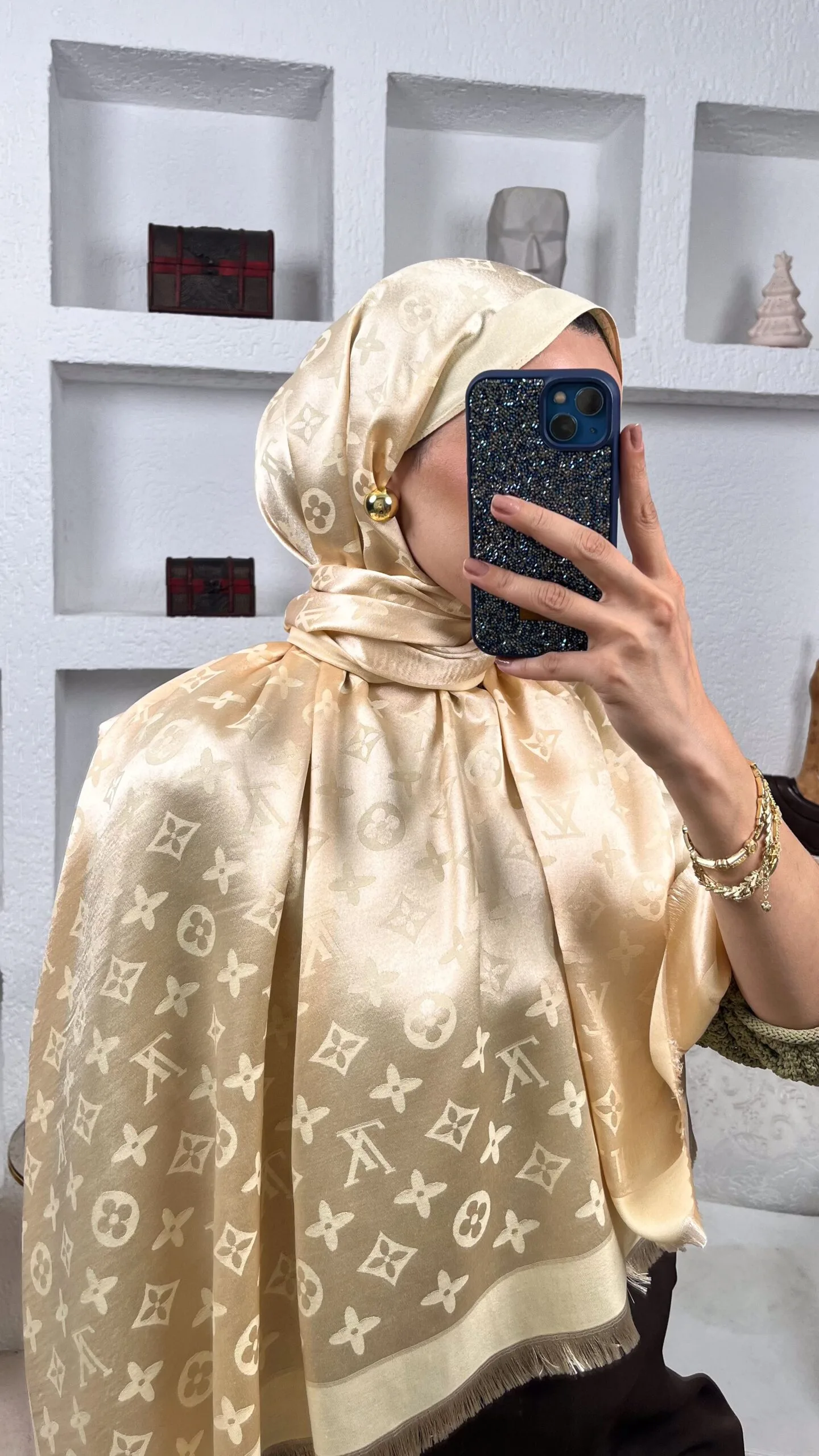 İthal Lv Pamuk Yün İpek Şal 49104 – Bej