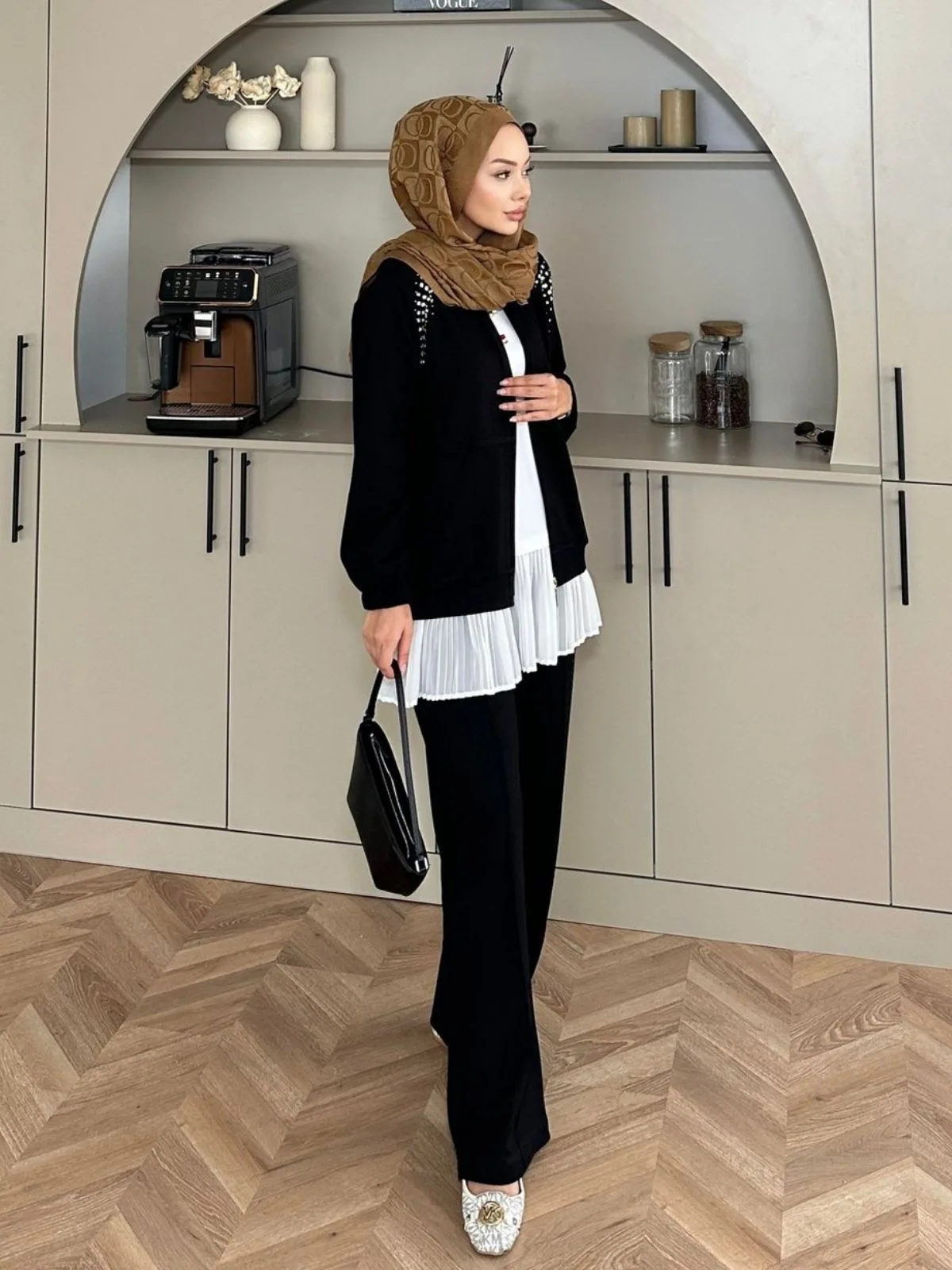 Kai Oysho Taşlı Bomber İkili Takım BÜYÜK BEDEN TK100247 – Siyah