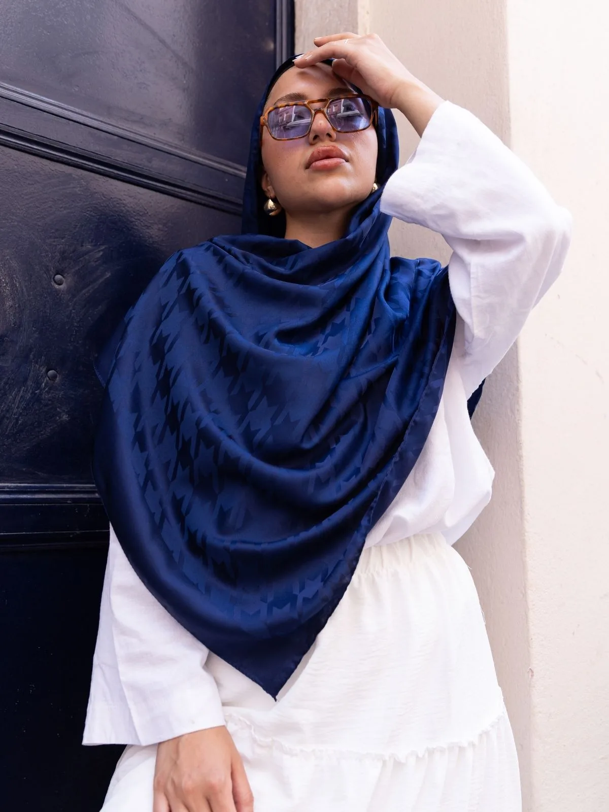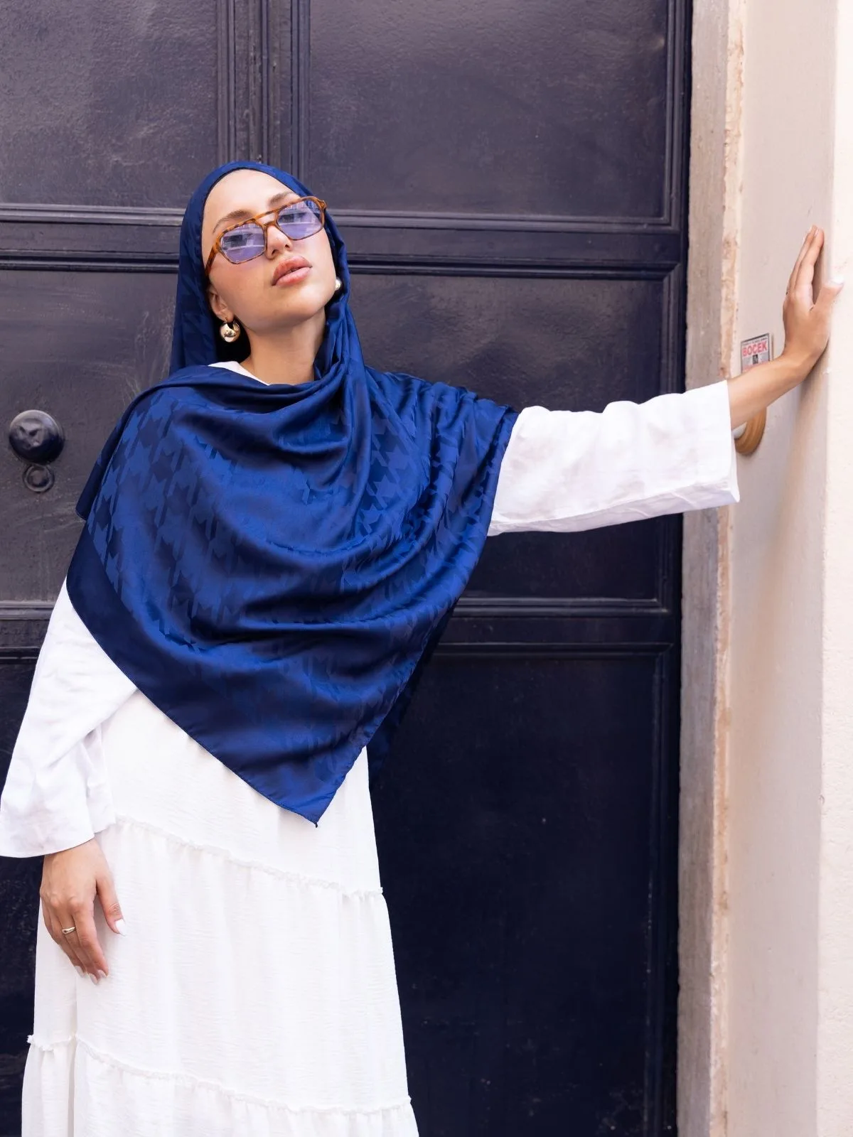 Kazayağı Desen Pamuk İpeksi Jakar Şal-53354-Lacivert