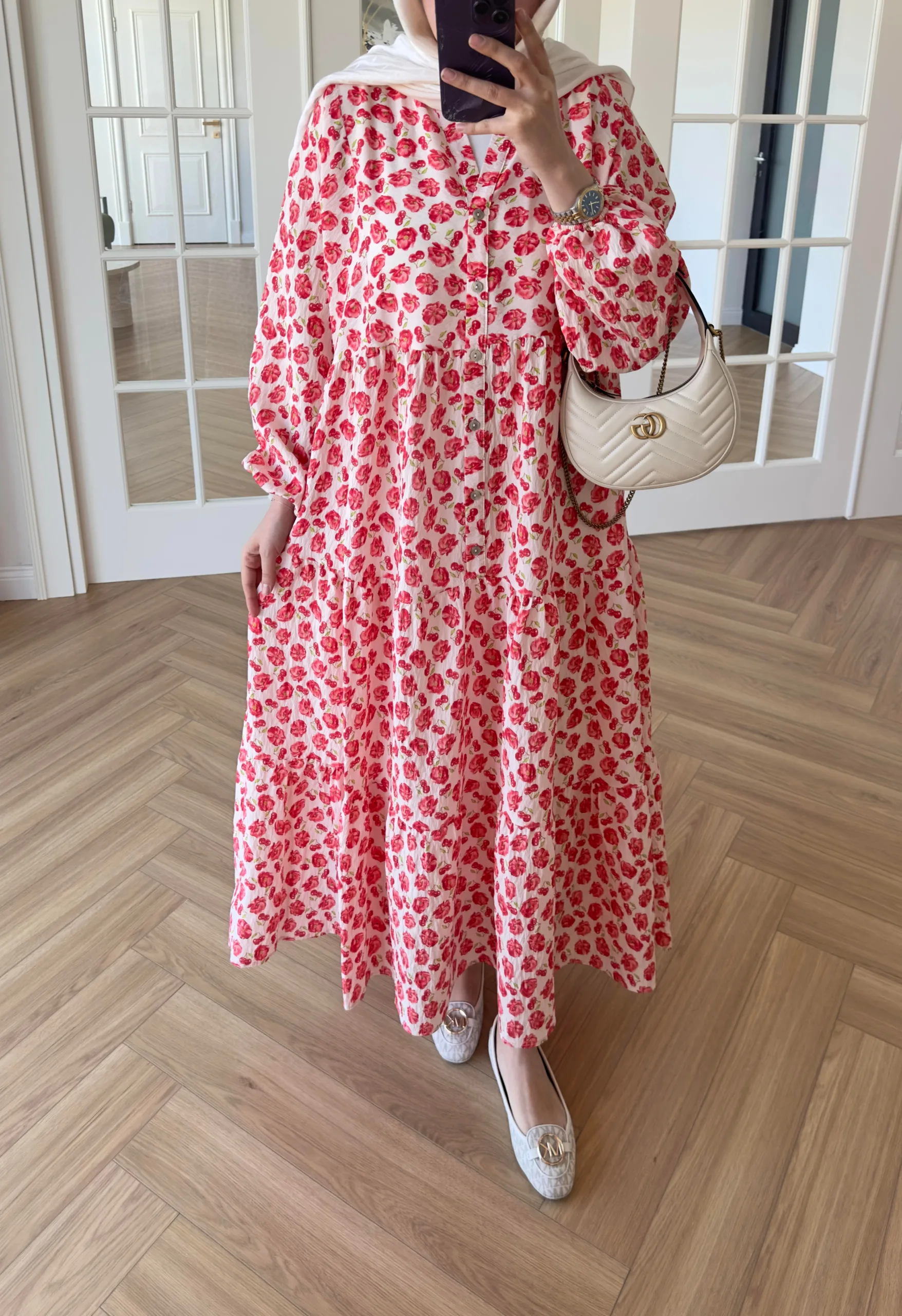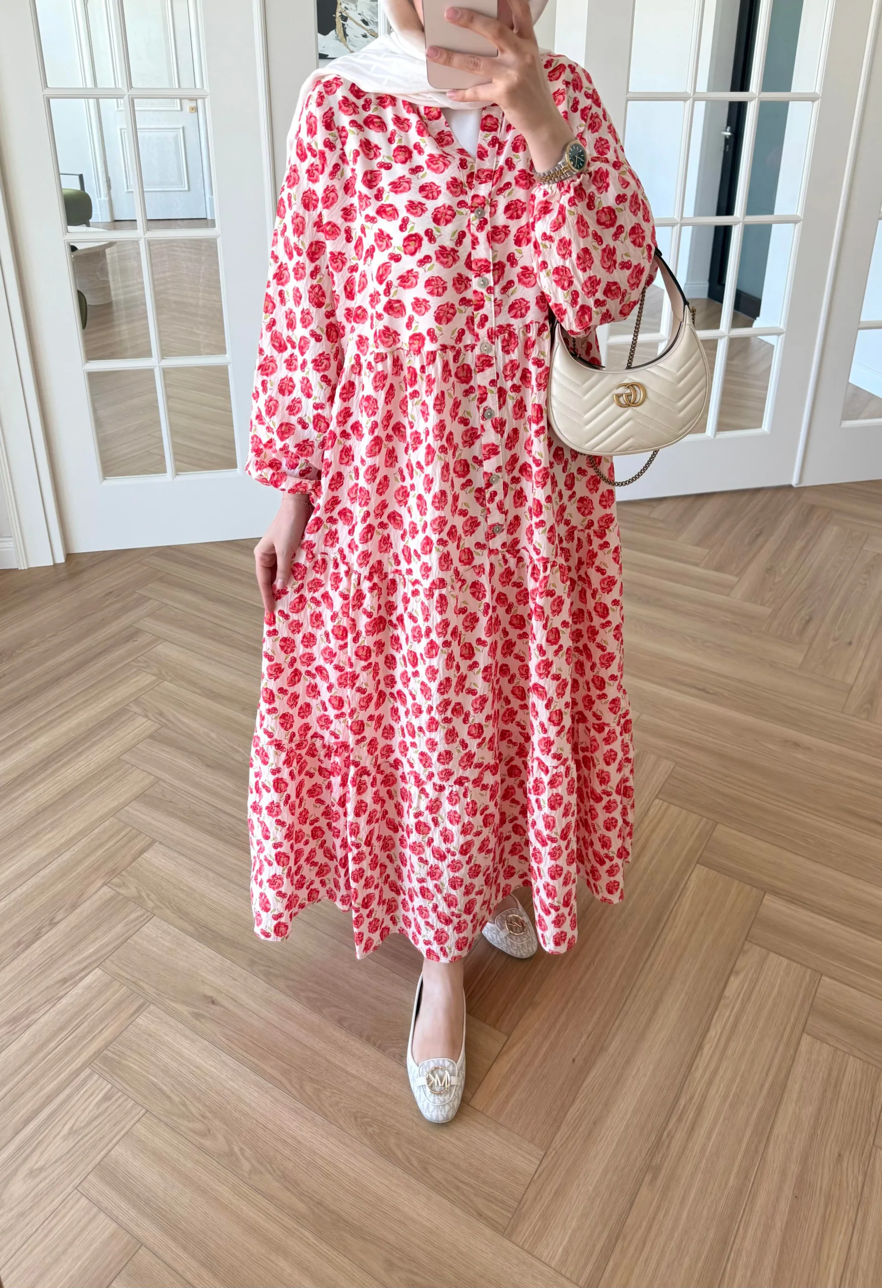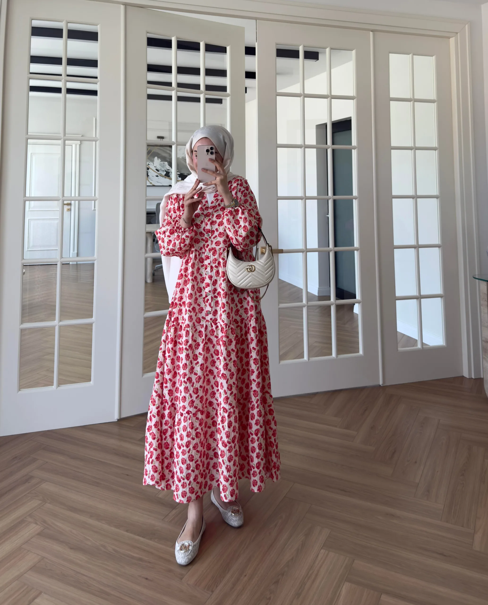 Bu ürün: Kiraz Desenli Elbise-1200-Kırmızı