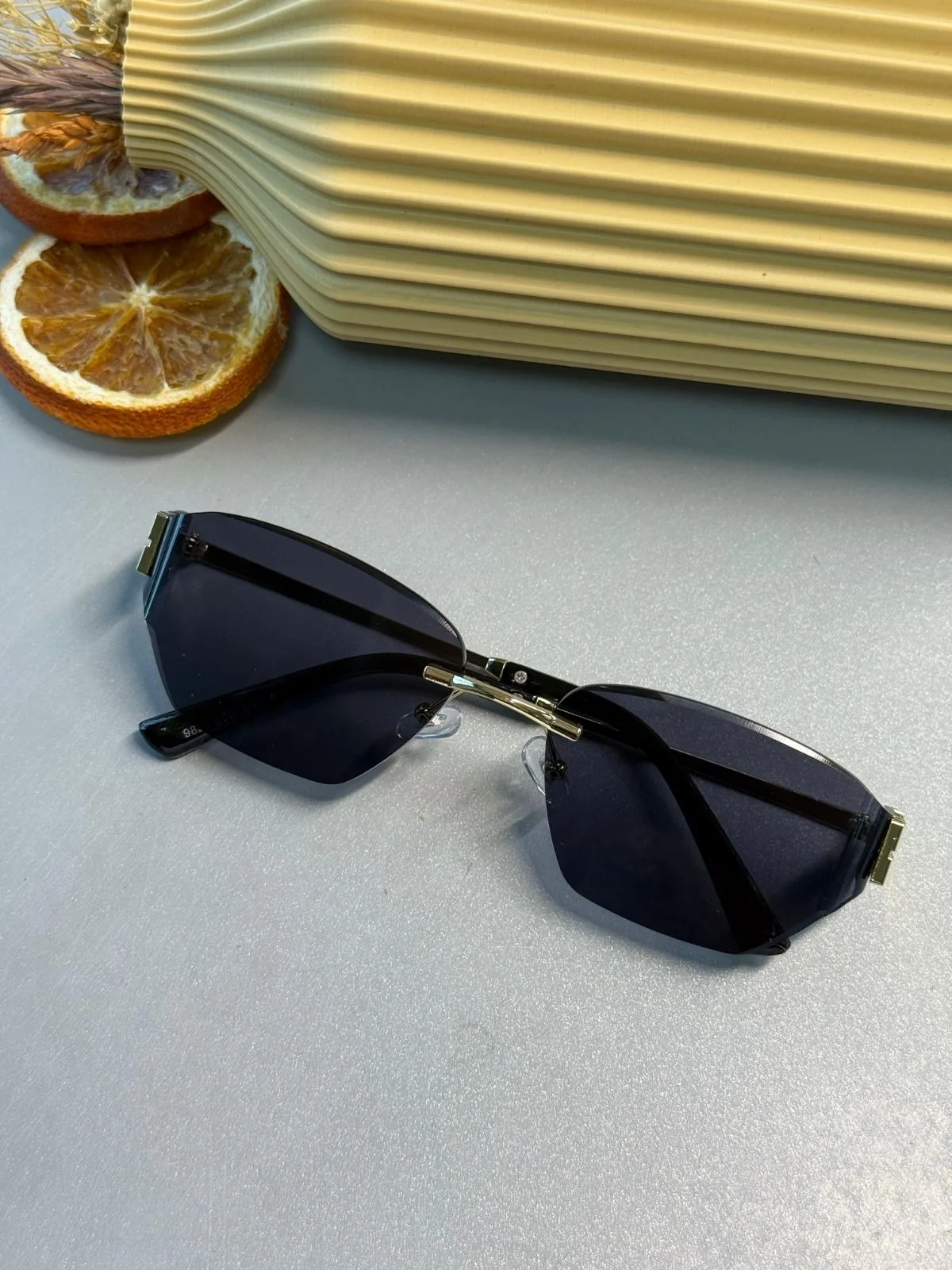 Gözlüğün cam kenarlarında yer alan belirgin kesik form, alışılmışın dışında ve avangart bir görünüm sunar. Minimal ama çarpıcı bir stil yansıtır.