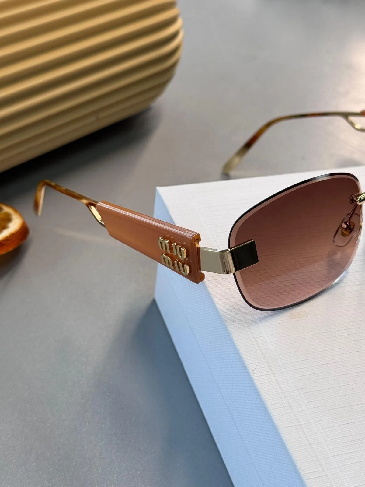 Mıu Mıu Kare Kesik Cam Detaylı Güneş Gözlüğü – Turuncu