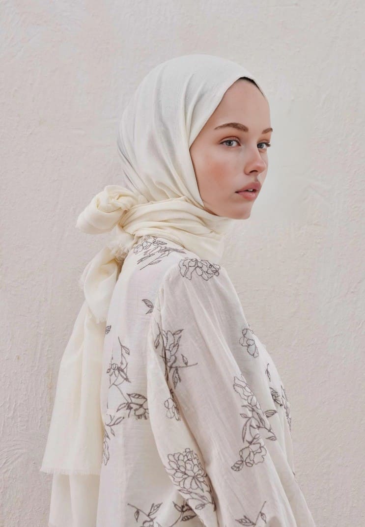 Organic Scarfs Bambu Kraş Şal Modeli -Açik krem