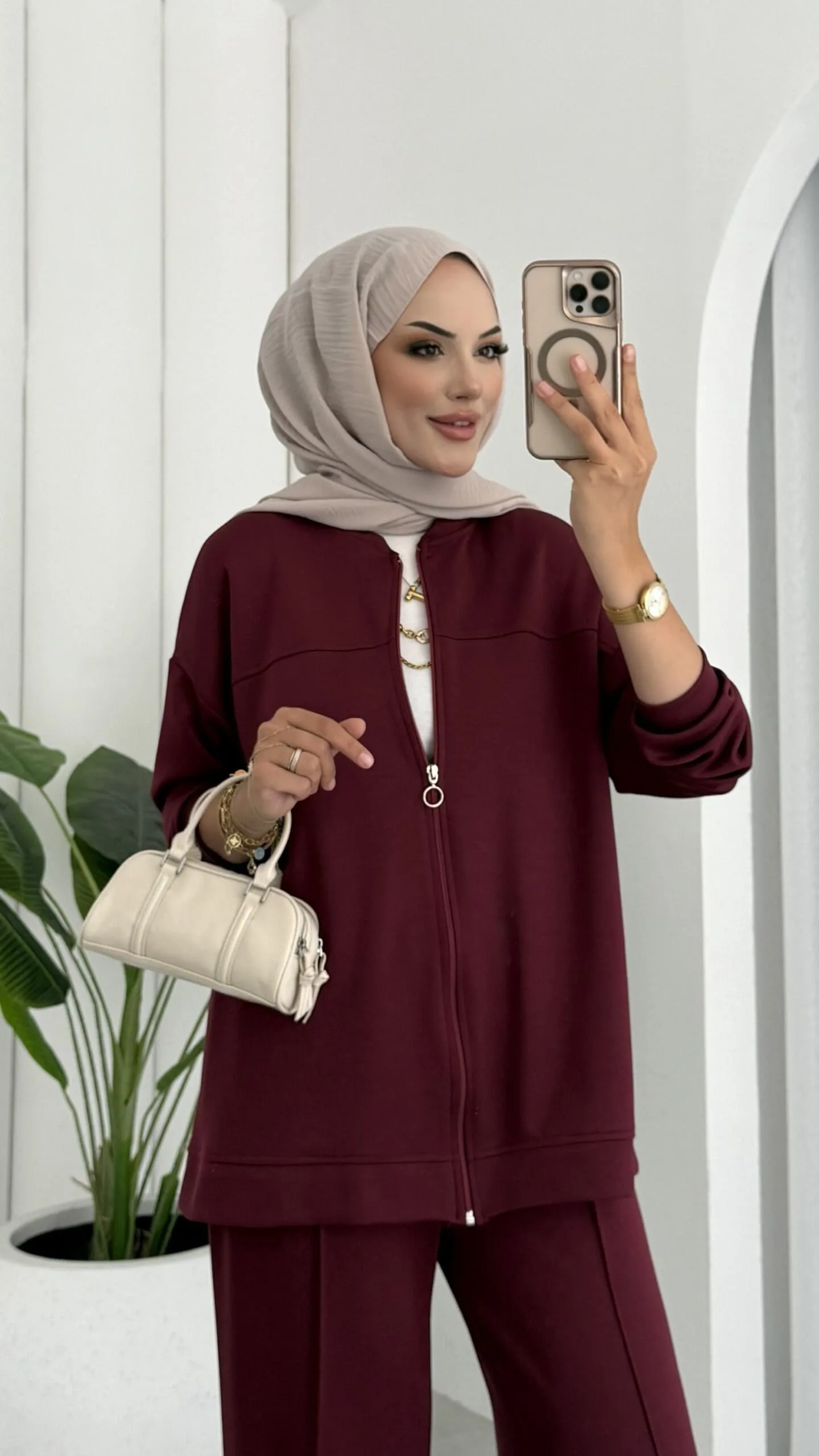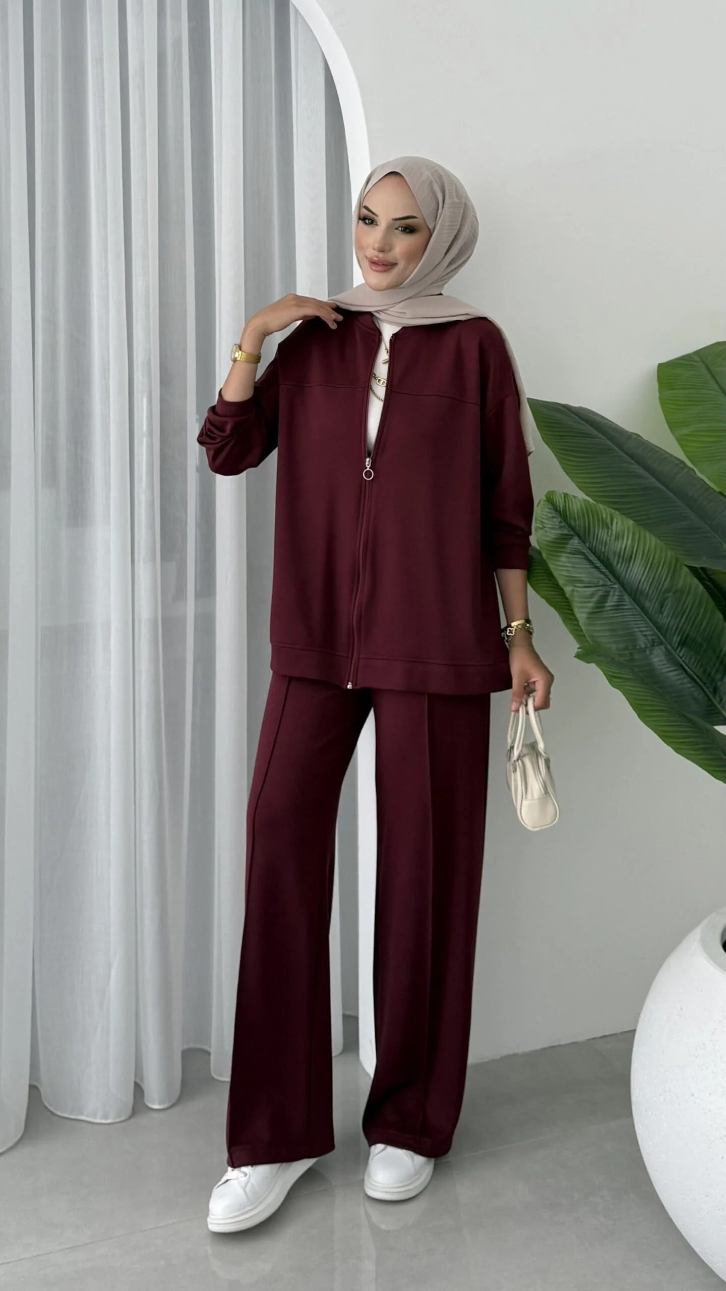 Oysho Fermuarlı Basic İkili Takım BÜYÜK BEDEN TK2962 – Bordo