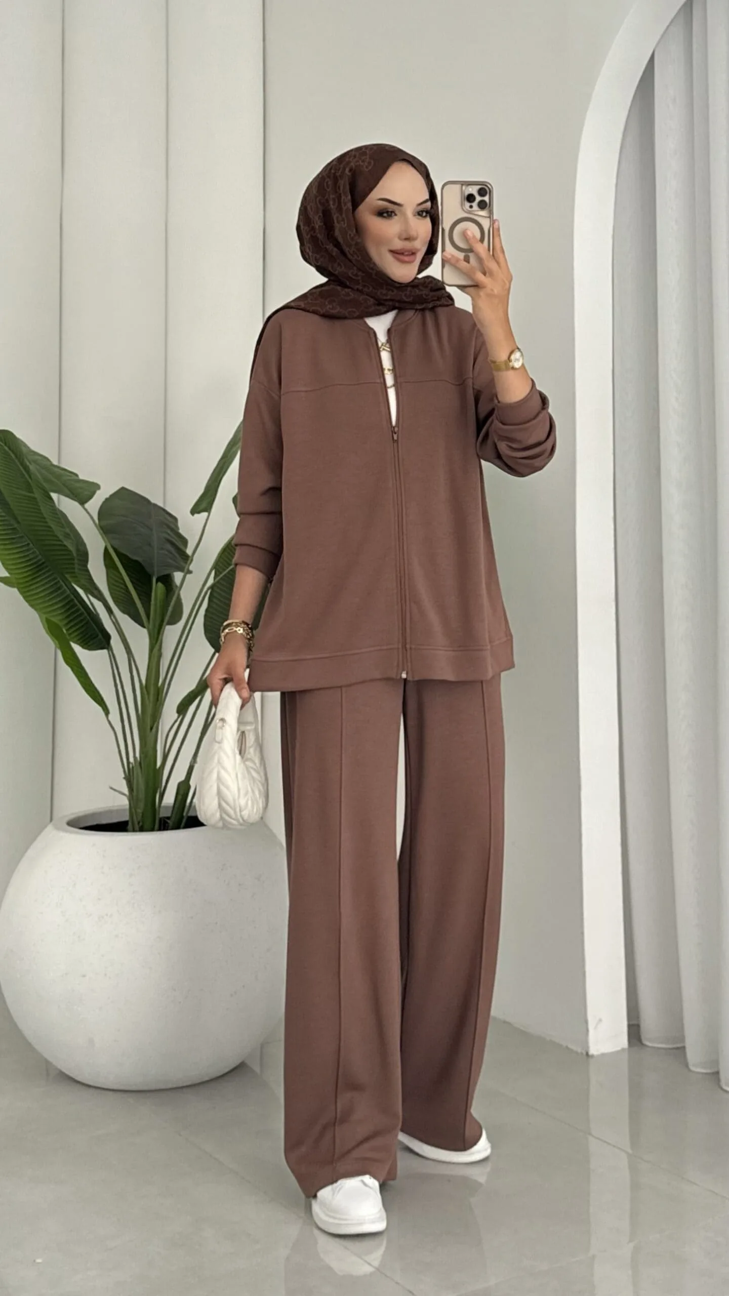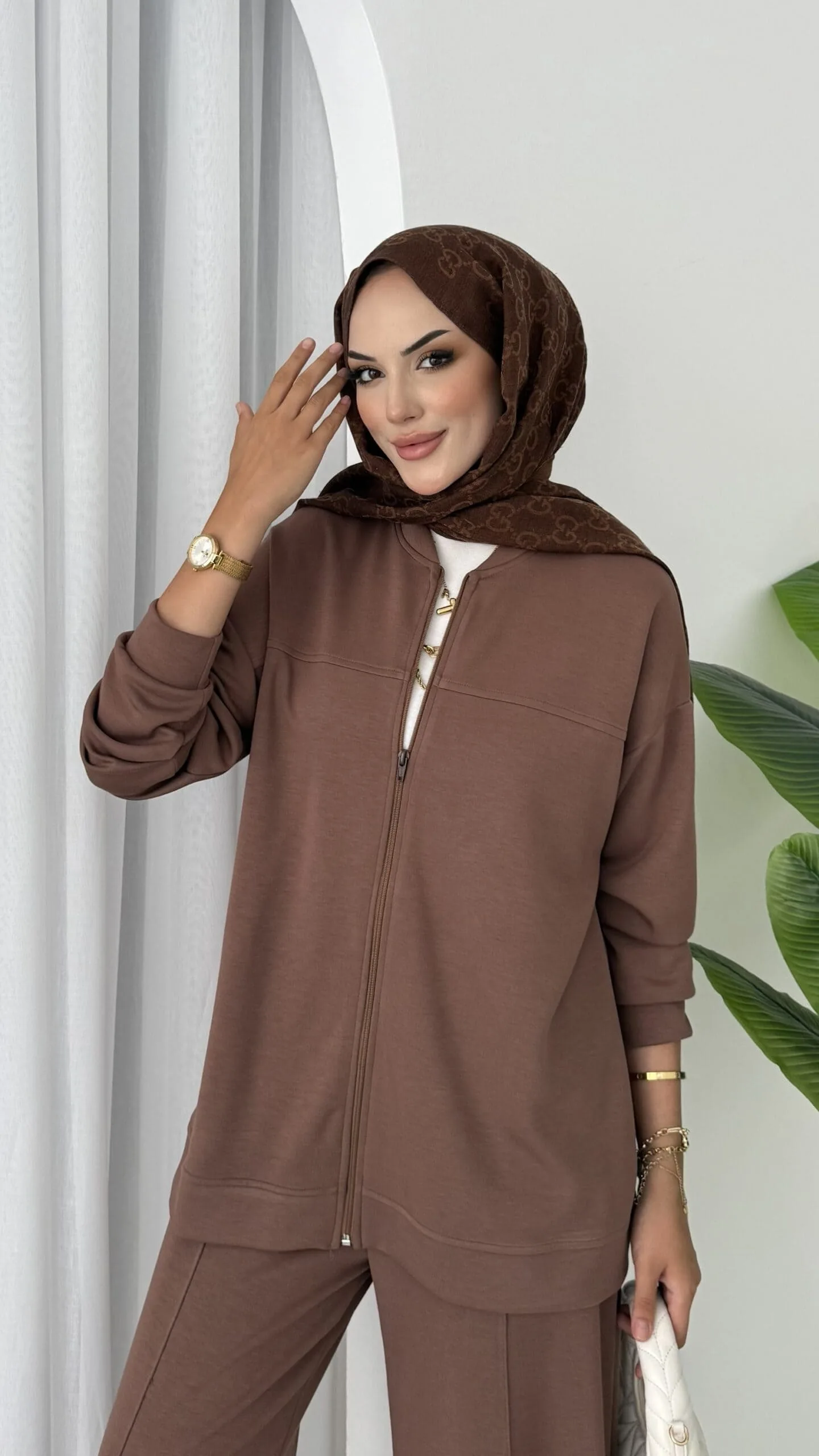 Oysho Fermuarlı Basic İkili Takım BÜYÜK BEDEN TK2962 – Karamel