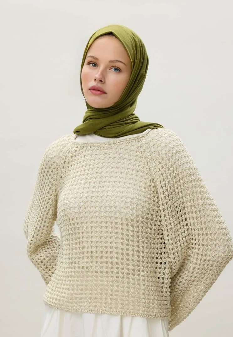 Penye Şal Hijap Modeli -Zeytin Dalı