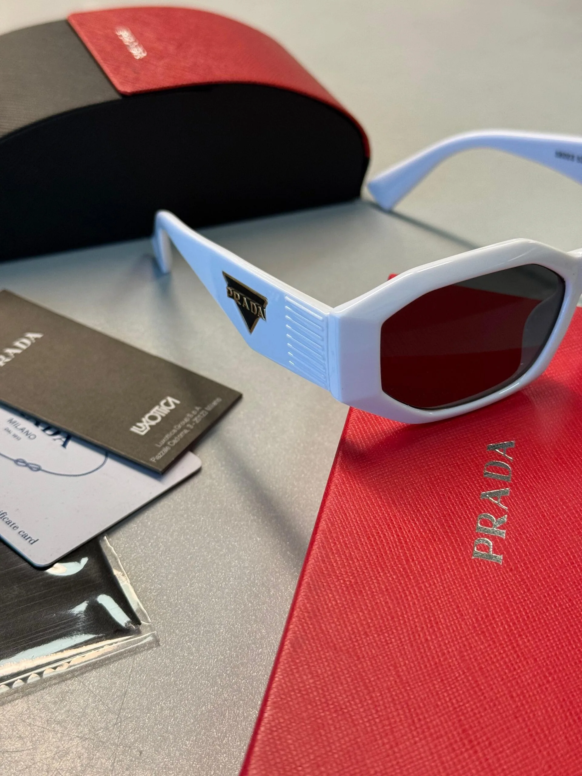 Prestijli Stil: İtalyan modasının öncüsü Prada’nın imza dokunuşuyla, her çeşit yüz hattına uyum sağlar.