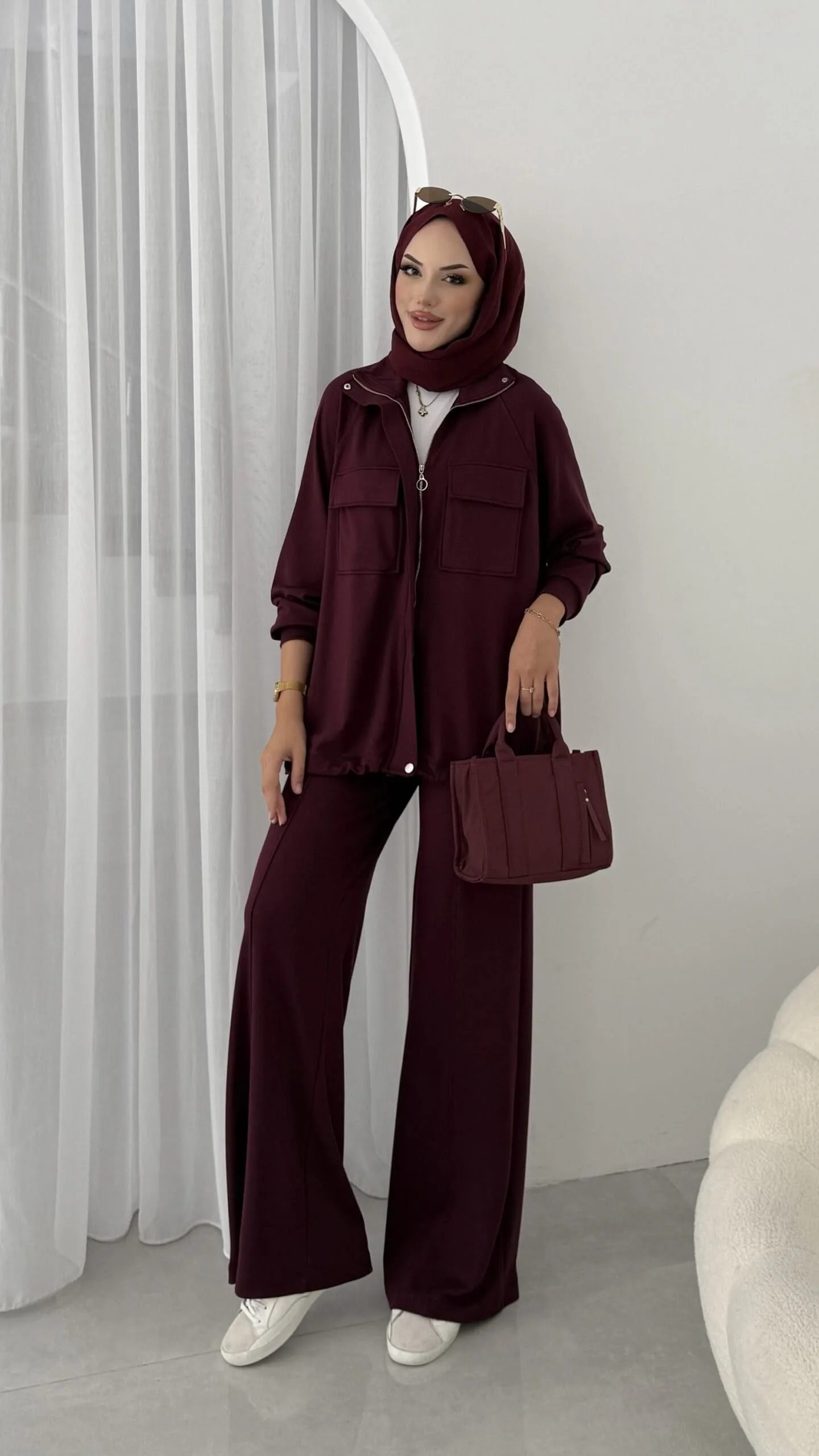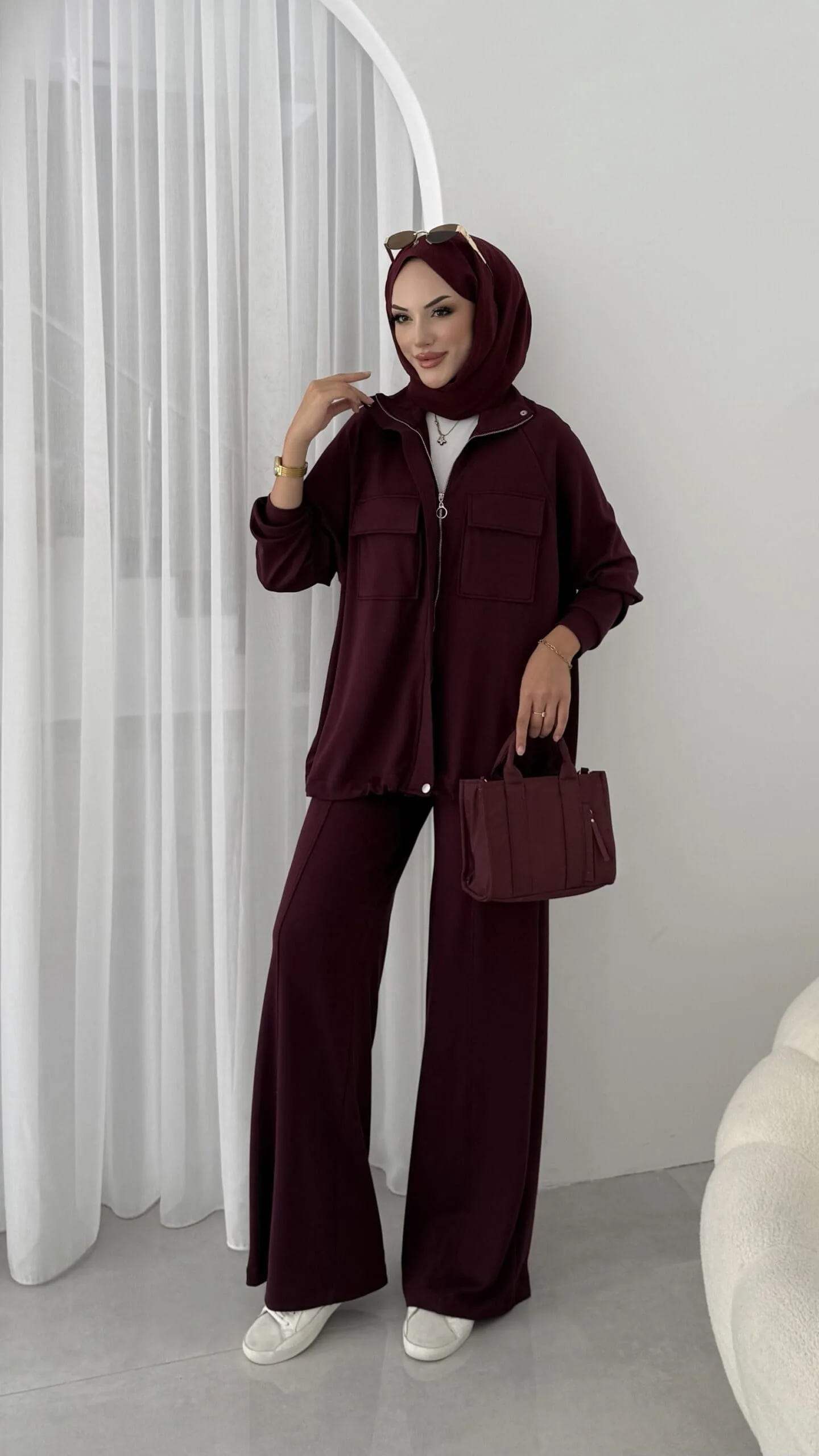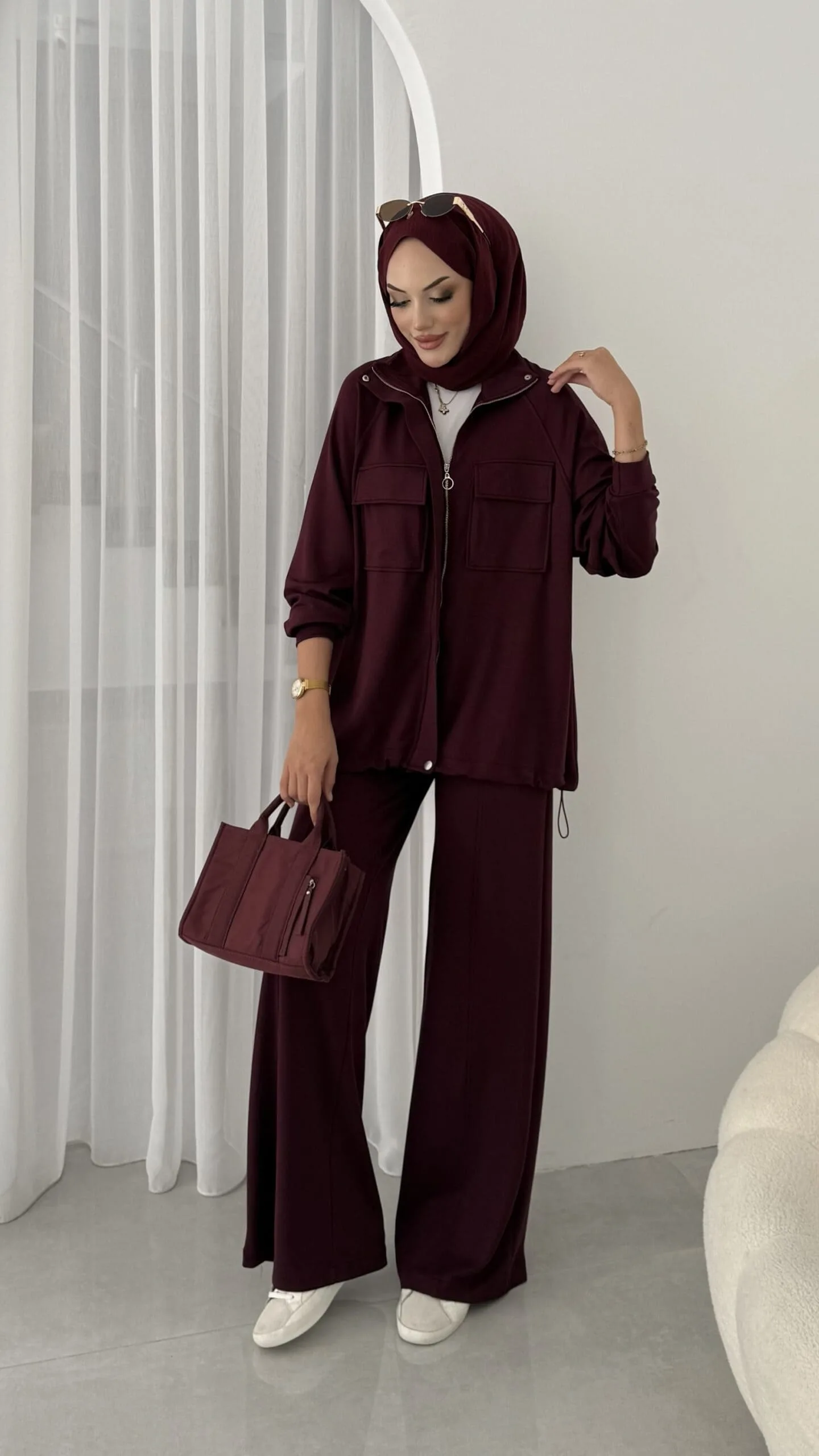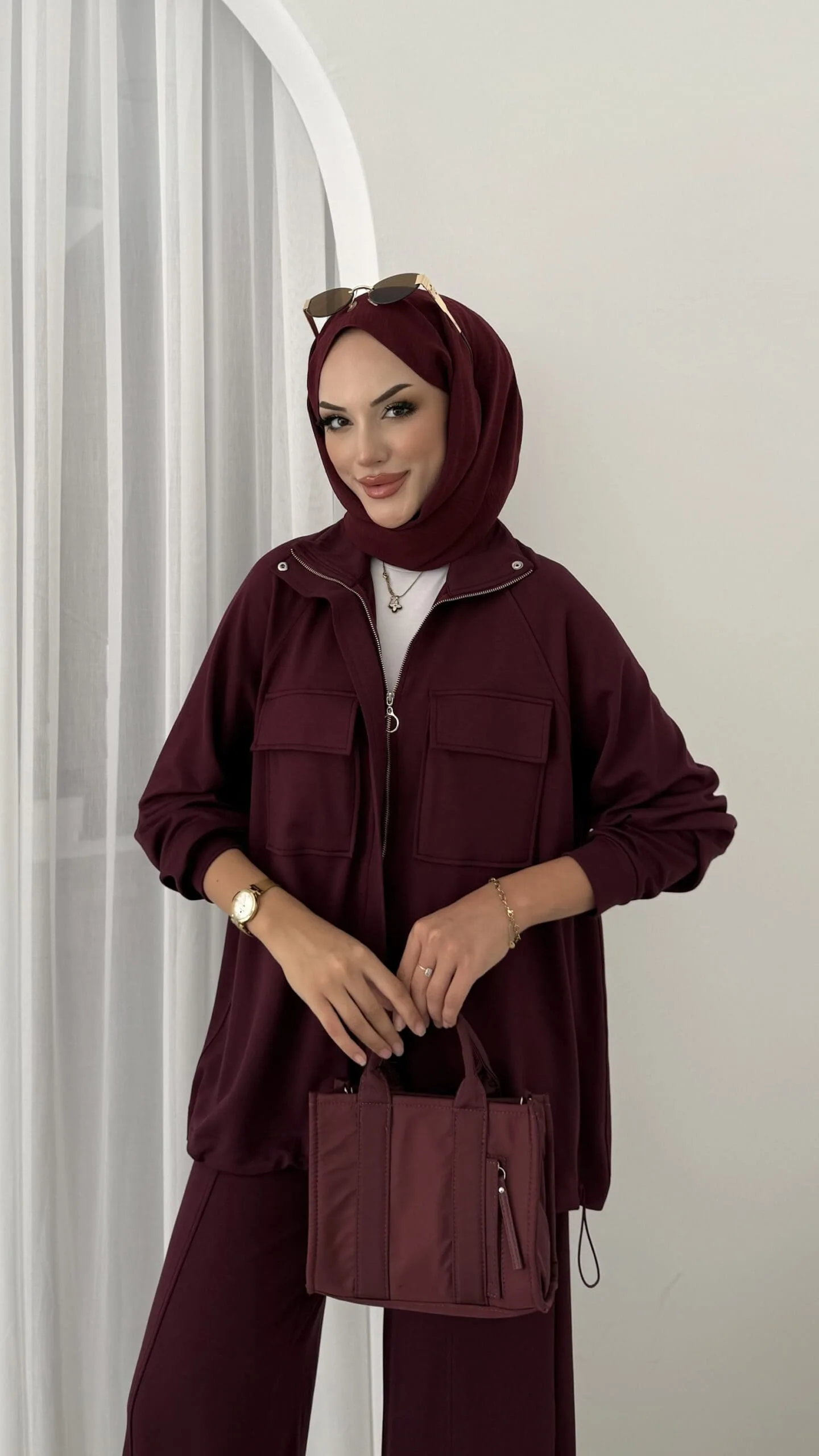 Premium Oysho Bomber İkili Takım BÜYÜK BEDEN TK100248 – Bordo