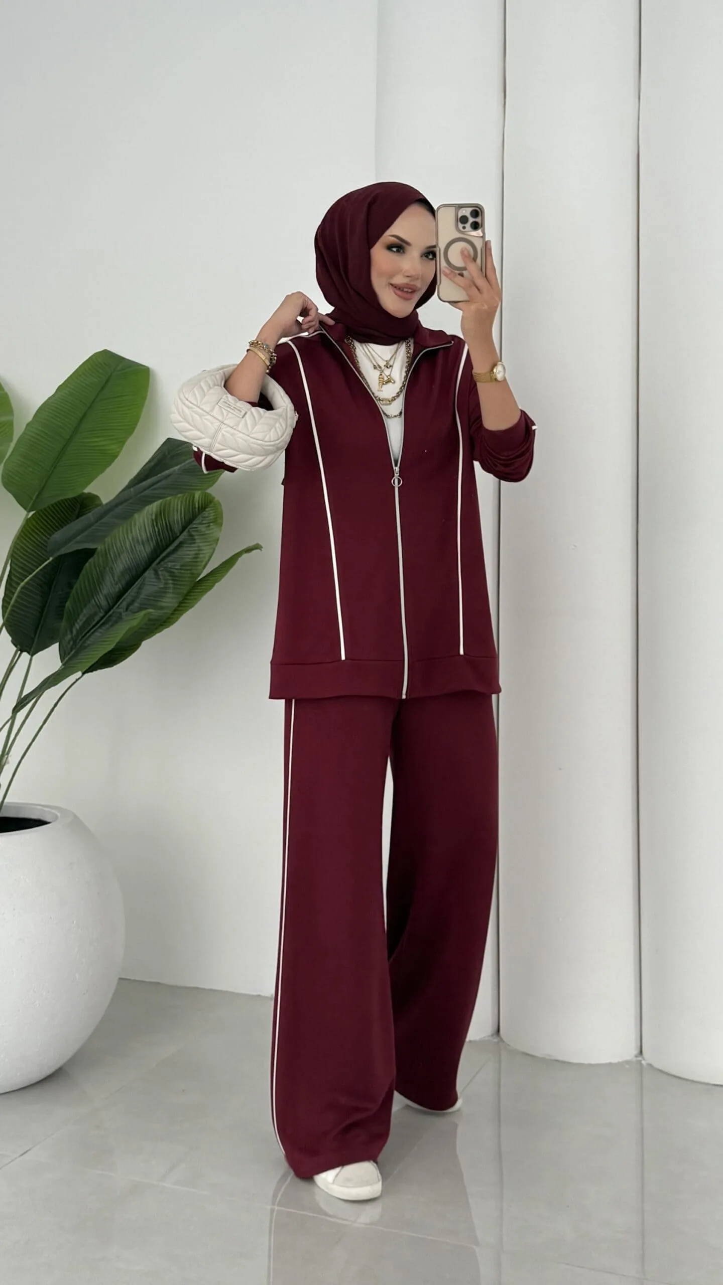 Premium Oysho Şeritli İkili Takım BÜYÜK BEDEN TK100244 -Bordo