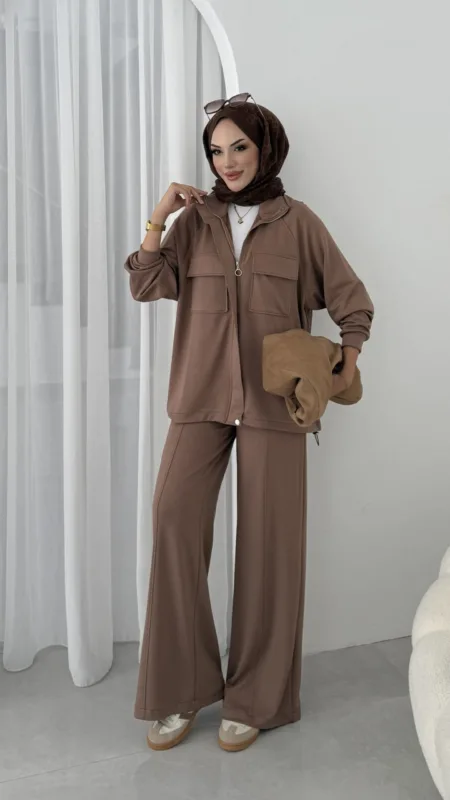 Hem günlük şıklıkta hem özel davetlerde rahatlıkla tercih edilebilecek bu takım, modern zarafeti geleneksel dokunuşlarla buluşturuyor.
