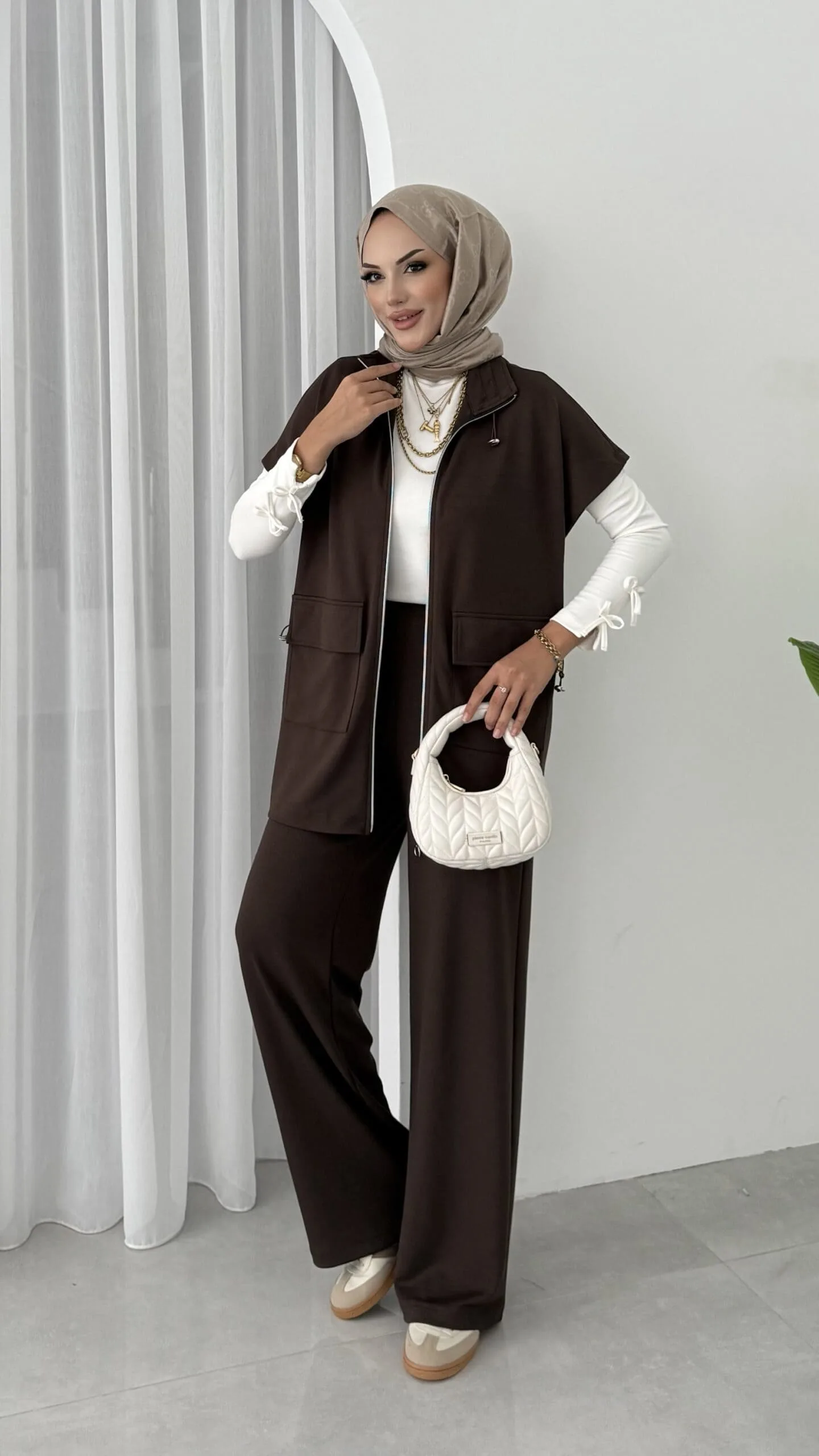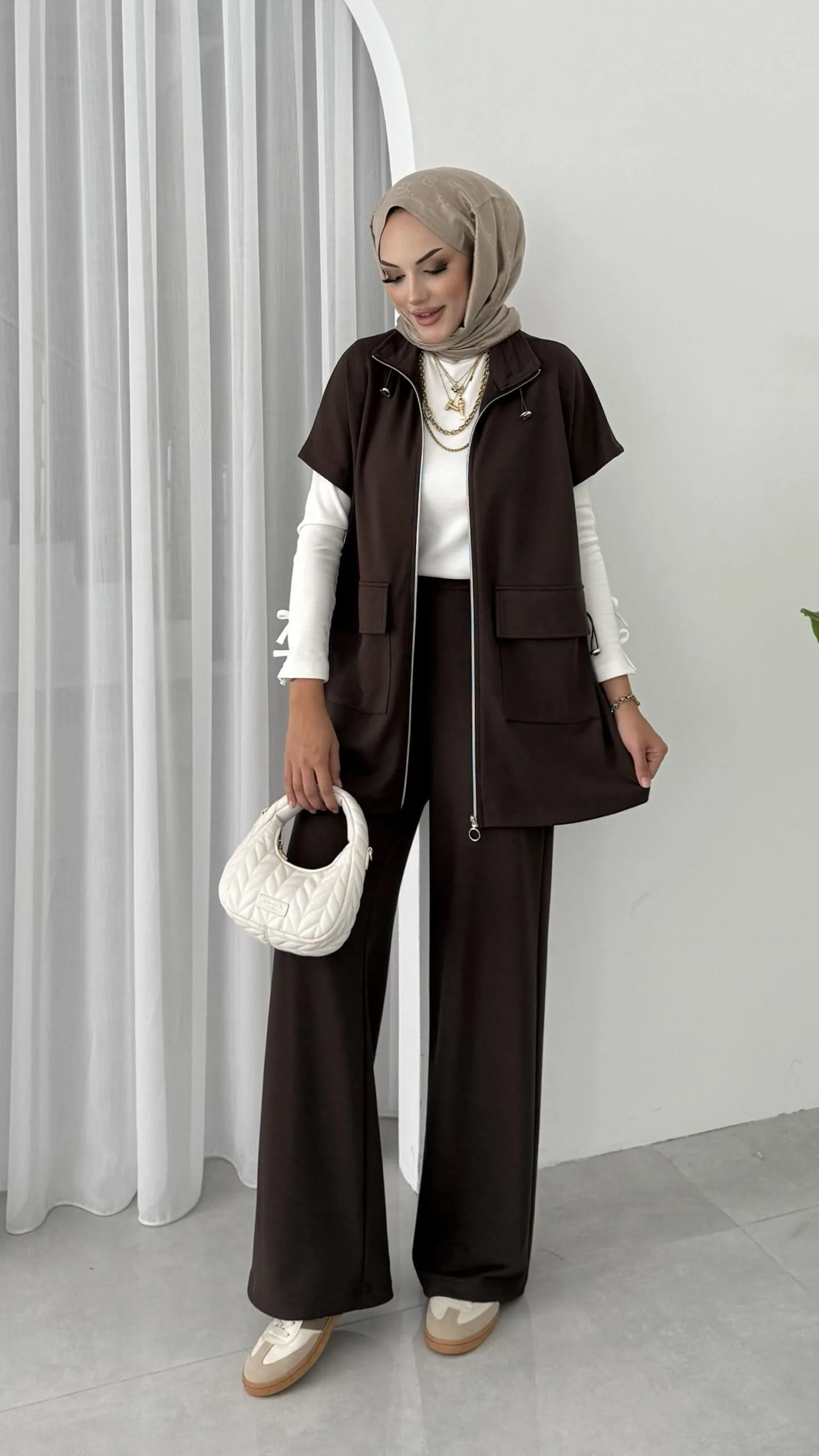 Premium Oysho Yelekli İkili Takım BÜYÜK BEDEN TK100249 – Acı Kahve