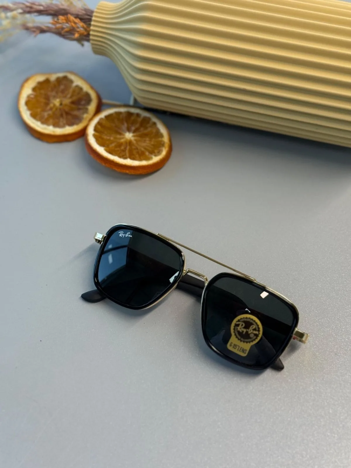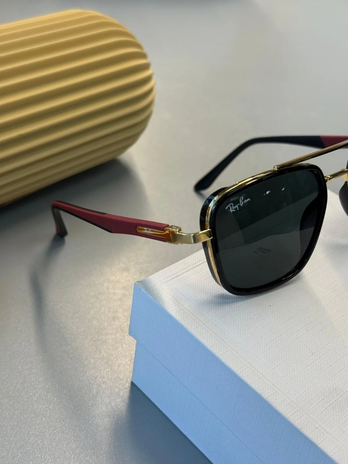 Ray-Ban Retro Square – Altın Krom – Bordo Detaylı Siyah Güneş Gözlüğü